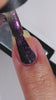Hourglass nail polish boasts a deep, blackened base that symbolizes the depth and mystery of time itself. It's infused with a strong purple shimmer, and silver magnetic effect that evokes the elegance and allure of the sands within an hourglass.