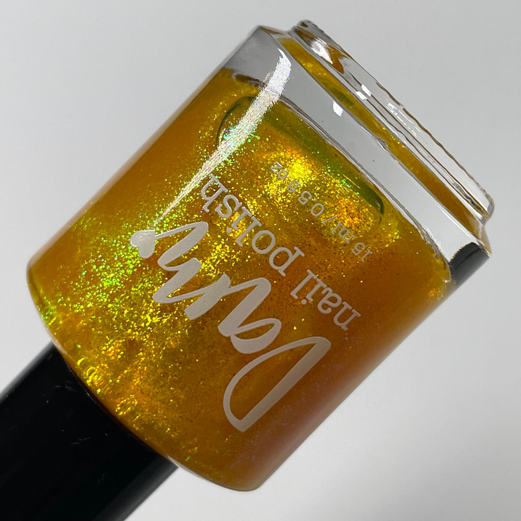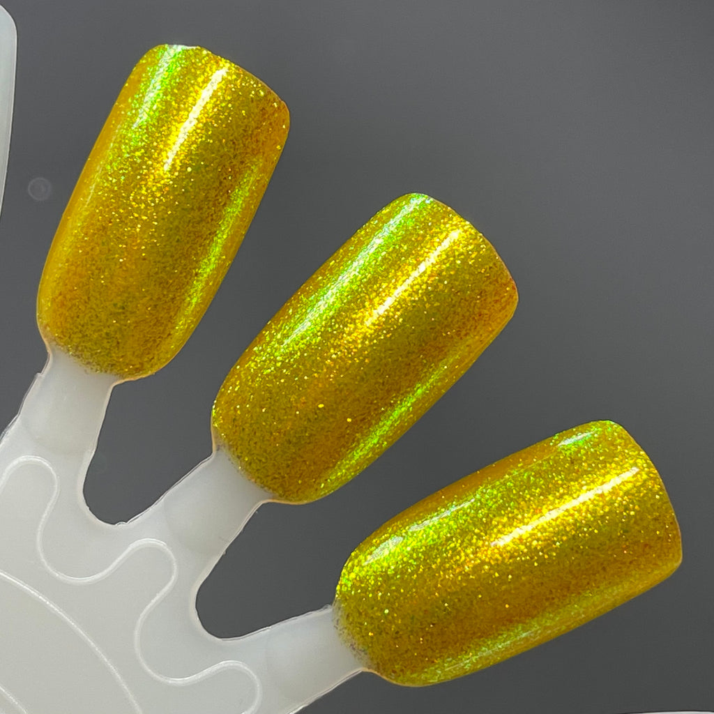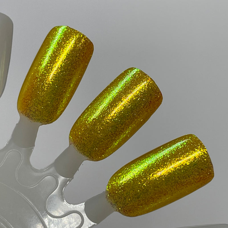 Monkey, from the Chinese Zodiac Collection by Dam Nail Polish has a sunny yellow base with yellow and green shifting shimmer.